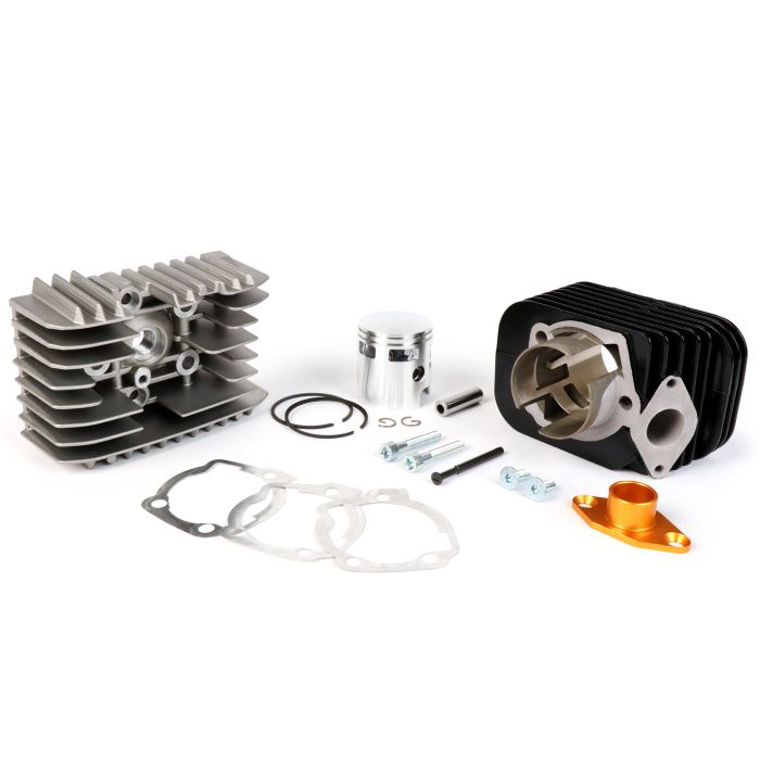 De Pinasco "EVOTEN BIG BORE" cilindersets worden geleverd met de nieuwe herziene cilinderkop met centrale bougie en 5 compartimentschroefverbinding.