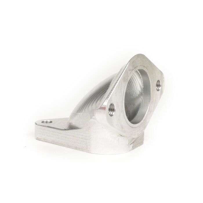 Het CAD-ontworpen inlaatspruitstuk wordt onder CNC-besturing uit massief materiaal gefreesd. De inlaatpoort is geschikt voor het vasthouden van verbindingsrubbers met een gat van 60 mm. Wij gebruiken en adviseren Mark Broadhurst (MB) rubbers. Deze zijn verkrijgbaar in twee verschillende diameters, geschikt voor carburateurs met een doorsnede van Ø24-25mm en Ø28-30mm.