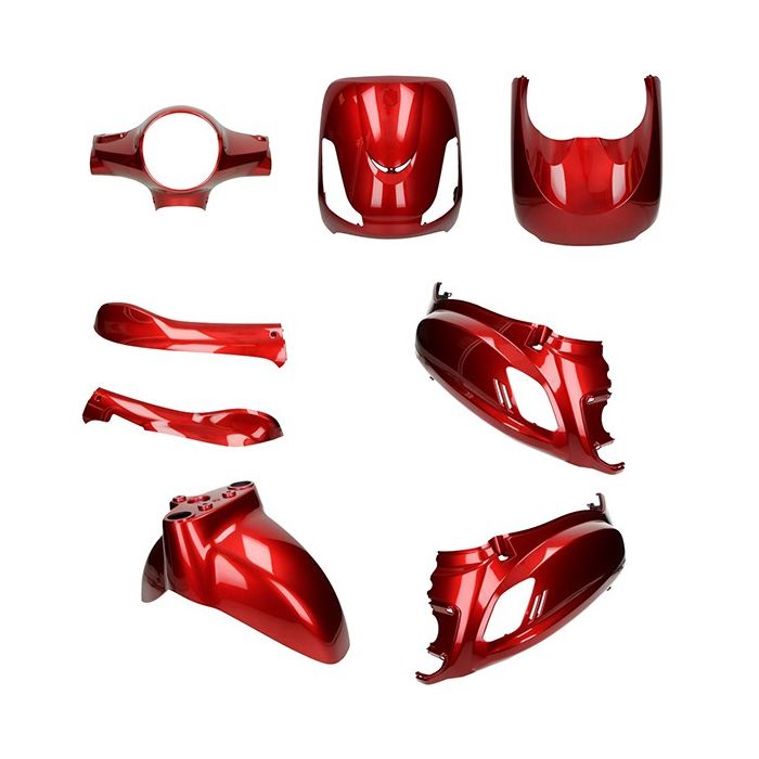 - Błotnik przedni - Osłona kierownicy - Spódnica z lewej strony - Spódnica z prawej strony - Ekran po lewej stronie - Ekran po prawej stronie - Przedni ekran u góry - Przedni ekran poniżej Uwaga! Nadaje się tylko do Sym Fiddle II zbudowanego od 2012 roku do chwili obecnej i bloku silnika XS1P37QMA. Do 2018 roku Sym miał dwa różne typy bloków silnika, GY6 i Sym.Jak mogę sprawdzić, jaki typ silnika ma mój skuter? Jest to podane w dolnej części bloku silnika lub na naklejce w kasku. Jeśli skuter ma kod XS1P39QMB, jest to blok silnika GY6. Jeśli na liście znajduje się kod XS1P37QMA, masz blok silnika MGS.Więcej informacji