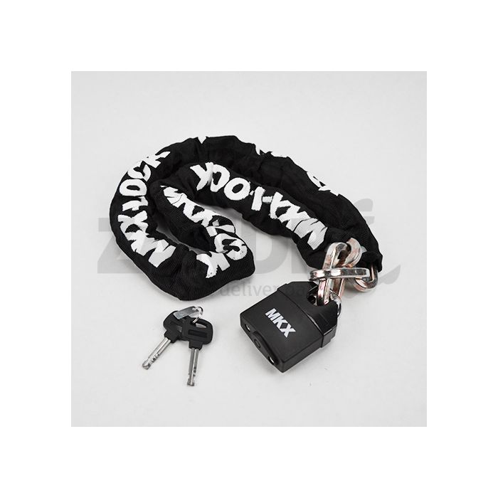 Blokada łańcucha jest bardzo ważna przed kradzieżą skutera. Dlatego ten zamek łańcuchowy jest wyposażony w utwardzony łańcuch i kłódkę. Ten zamek jest również wodoodporny, dzięki czemu można zapobiec rdzewianiu blokady. Zamek jest łatwy do przenoszenia w pudełku kumpla. Uwaga, ta blokada nie jest zatwierdzona!Konserwacja tego zamka łańcucha MKX