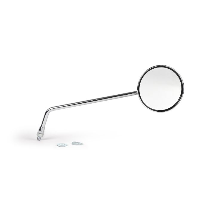 De BGM PRO spiegels hebben een ideale verhouding tussen armlengte en spiegeloppervlak. Met een spiegeloppervlak van slechts 95 mm harmonieert de look perfect met klassieke scooters. De lengte van de montagearm is gemeten (250mm) zodat er altijd perfect zicht naar achteren is. Het steekt slechts minimaal uit buiten de zijcontour van de scooter. Dit betekent dat de praktische bruikbaarheid volledig behouden blijft, zelfs als het krap wordt...