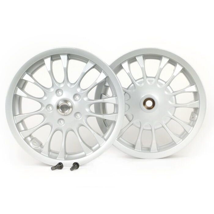 Velgenset Piaggio 3.00-12 inch 10 spaken type Sprint geschikt voor Vespa Sprint 50 (ZAPC53101),Sprint 125,Sprint 150,Primavera 50 (ZAPC53100),Primavera 125,Primavera 150 zilver